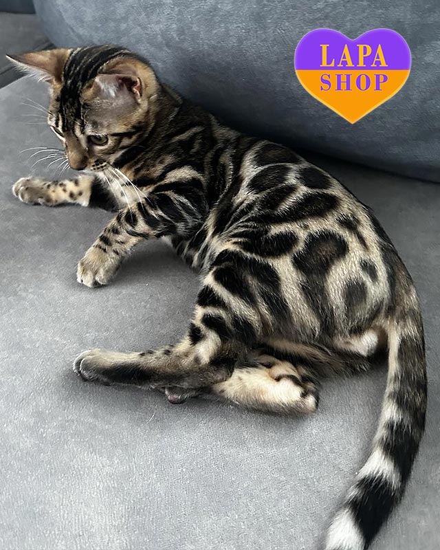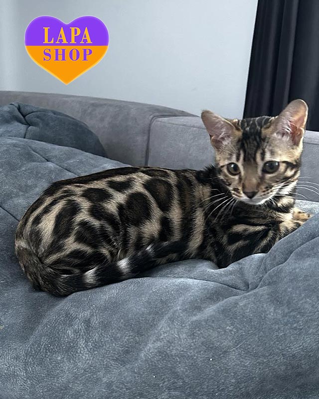 Has bought the Bengal kitten The main reason we chose Lapa.shop was to find and buy a healthy, purebred kitten from a reputable breeder. There are many ads on the internet, and it takes a lot of time to check each seller. The purchase process was very convenient: payment is made on the website, but the money does not go directly to the breeder. Instead, it remains temporarily with Lapa.shop until you actually receive your pet (this guarantees that the breeder will not disappear). We really liked the breeder, Elena. We had to wait a month to receive the kitten, but my wife and I really wanted to see how he was growing, how he was playing, and we generally started to miss him in advance. Elena periodically sent us videos of him, which we eagerly awaited and watched several times. We also wanted to talk to her and get advice on kitten adaptation, upbringing, feeding, and so on. We received Leon vaccinated and fully ready for the trip, with all the documents. The kitten quickly adapted to his new home. He went to the litter box for the first time the same day, and in a couple of days, he went to the big litter box. We are now the happy owners of a magnificent Bengal boy.