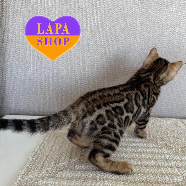 Has bought the Bengal kitten The main reason we chose Lapa.shop was to find and buy a healthy, purebred kitten from a reputable breeder. There are many ads on the internet, and it takes a lot of time to check each seller. The purchase process was very convenient: payment is made on the website, but the money does not go directly to the breeder. Instead, it remains temporarily with Lapa.shop until you actually receive your pet (this guarantees that the breeder will not disappear). We really liked the breeder, Elena. We had to wait a month to receive the kitten, but my wife and I really wanted to see how he was growing, how he was playing, and we generally started to miss him in advance. Elena periodically sent us videos of him, which we eagerly awaited and watched several times. We also wanted to talk to her and get advice on kitten adaptation, upbringing, feeding, and so on. We received Leon vaccinated and fully ready for the trip, with all the documents. The kitten quickly adapted to his new home. He went to the litter box for the first time the same day, and in a couple of days, he went to the big litter box. We are now the happy owners of a magnificent Bengal boy.