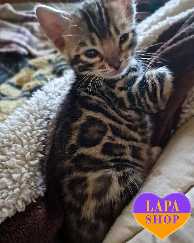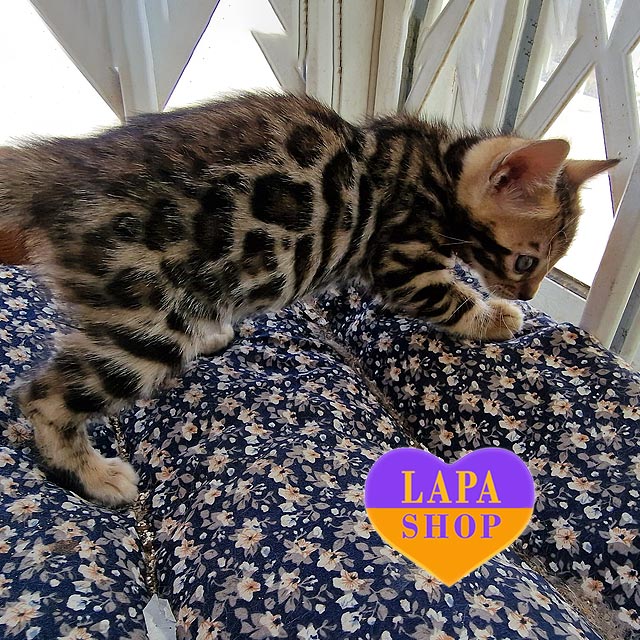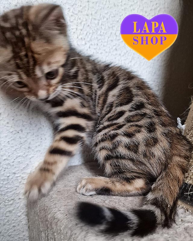 Has bought the Bengal kitten The main reason we chose Lapa.shop was to find and buy a healthy, purebred kitten from a reputable breeder. There are many ads on the internet, and it takes a lot of time to check each seller. The purchase process was very convenient: payment is made on the website, but the money does not go directly to the breeder. Instead, it remains temporarily with Lapa.shop until you actually receive your pet (this guarantees that the breeder will not disappear). We really liked the breeder, Elena. We had to wait a month to receive the kitten, but my wife and I really wanted to see how he was growing, how he was playing, and we generally started to miss him in advance. Elena periodically sent us videos of him, which we eagerly awaited and watched several times. We also wanted to talk to her and get advice on kitten adaptation, upbringing, feeding, and so on. We received Leon vaccinated and fully ready for the trip, with all the documents. The kitten quickly adapted to his new home. He went to the litter box for the first time the same day, and in a couple of days, he went to the big litter box. We are now the happy owners of a magnificent Bengal boy.