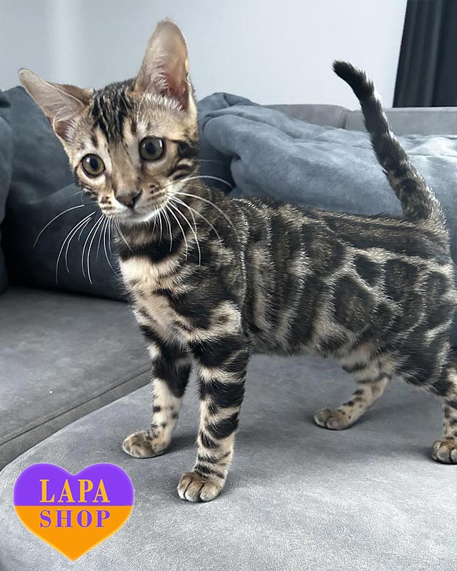 Has bought the Bengal kitten The main reason we chose Lapa.shop was to find and buy a healthy, purebred kitten from a reputable breeder. There are many ads on the internet, and it takes a lot of time to check each seller. The purchase process was very convenient: payment is made on the website, but the money does not go directly to the breeder. Instead, it remains temporarily with Lapa.shop until you actually receive your pet (this guarantees that the breeder will not disappear). We really liked the breeder, Elena. We had to wait a month to receive the kitten, but my wife and I really wanted to see how he was growing, how he was playing, and we generally started to miss him in advance. Elena periodically sent us videos of him, which we eagerly awaited and watched several times. We also wanted to talk to her and get advice on kitten adaptation, upbringing, feeding, and so on. We received Leon vaccinated and fully ready for the trip, with all the documents. The kitten quickly adapted to his new home. He went to the litter box for the first time the same day, and in a couple of days, he went to the big litter box. We are now the happy owners of a magnificent Bengal boy.
