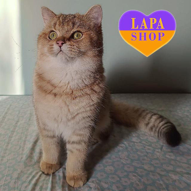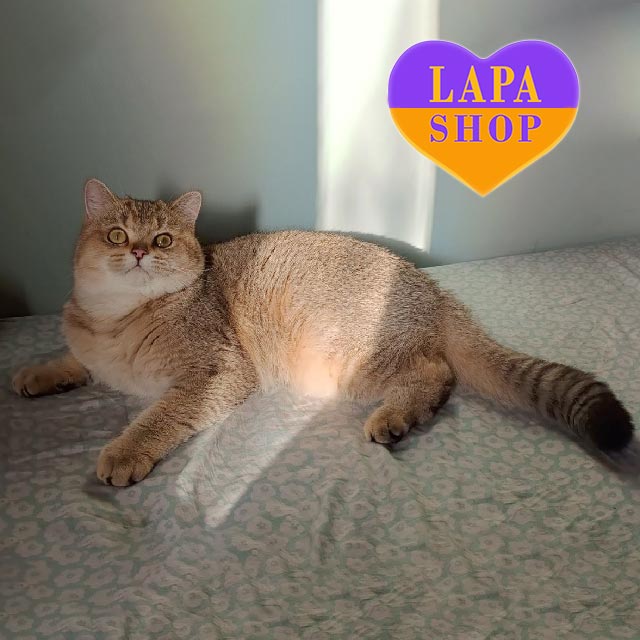 A good British cat by type, even with the presence of the golden chinchilla gene, he turned out to be quite large.