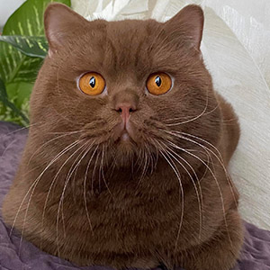 George is a true gentleman among the British. Its rich brown (cinnamon) color looks extremely impressive and noble. A compact, strong body, a round muzzle, and a soft coat – everything about him corresponds to the classic British type.