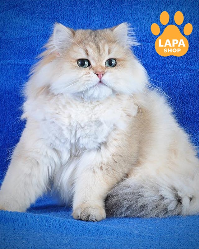 Elfik is a real little wizard among British cats. His golden shaded color (ny 11) looks like a shining veil, and his fluffy coat and round muzzle add a special charm to him.