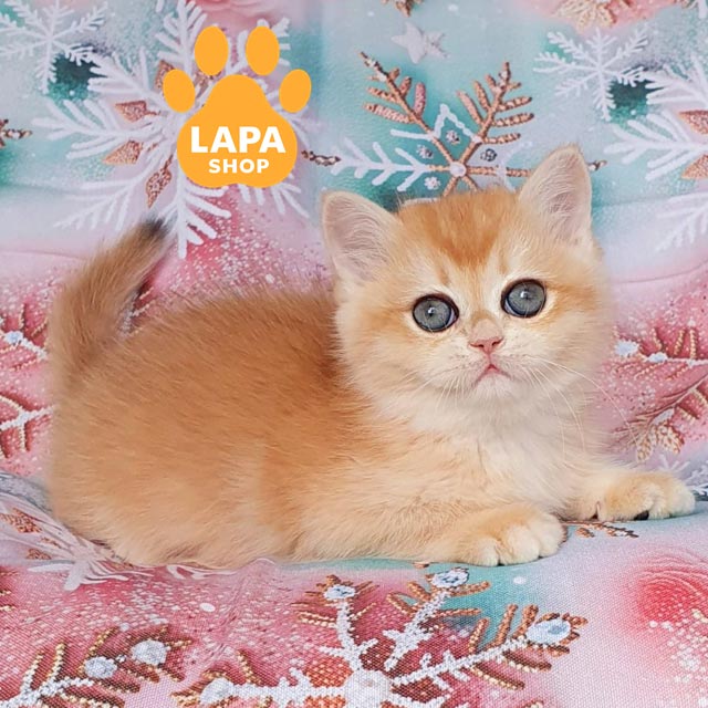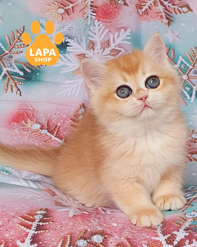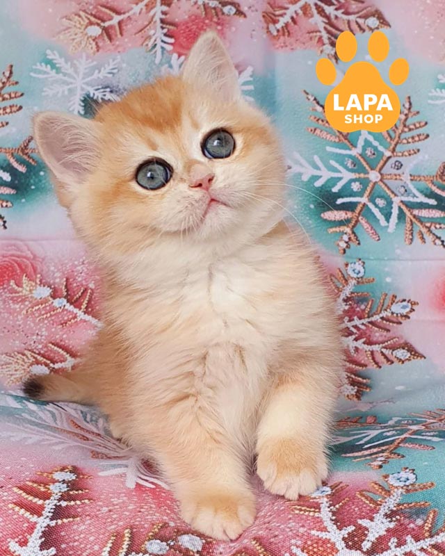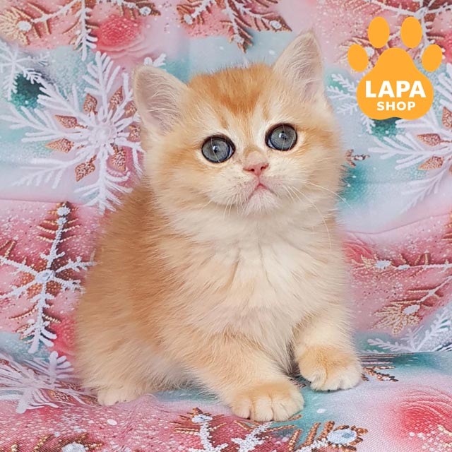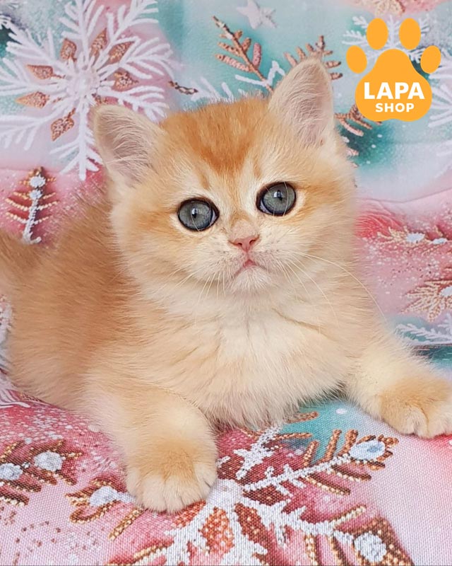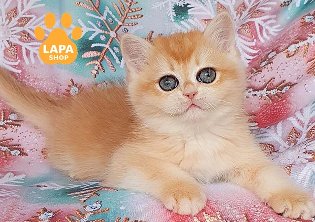 Businka is a charming girl of the British Shorthair breed with a luxurious golden shell color, which gives her image a special softness and nobility.
