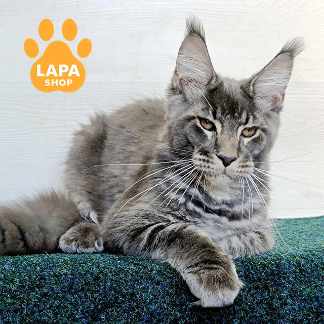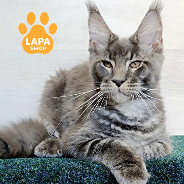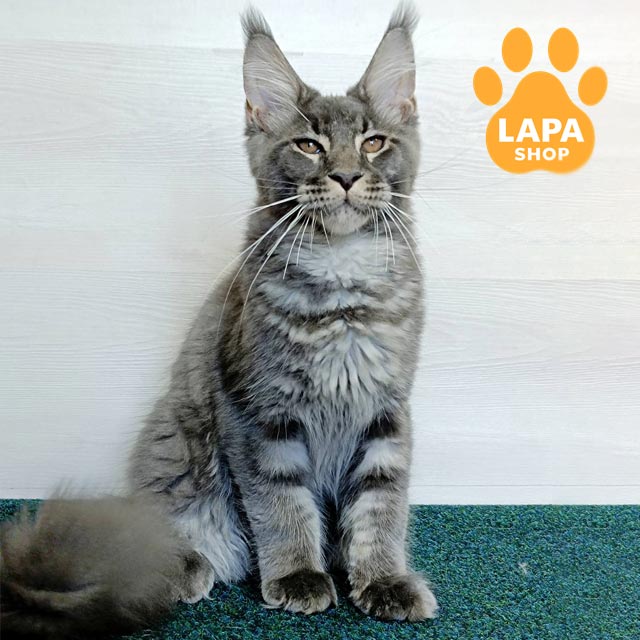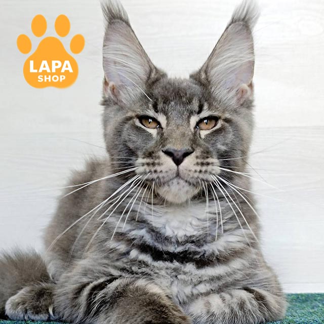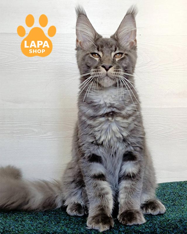 Joker is a real little lion of the Maine Coon breed with a blue silver marble color (as 22). A kitten with his own face).