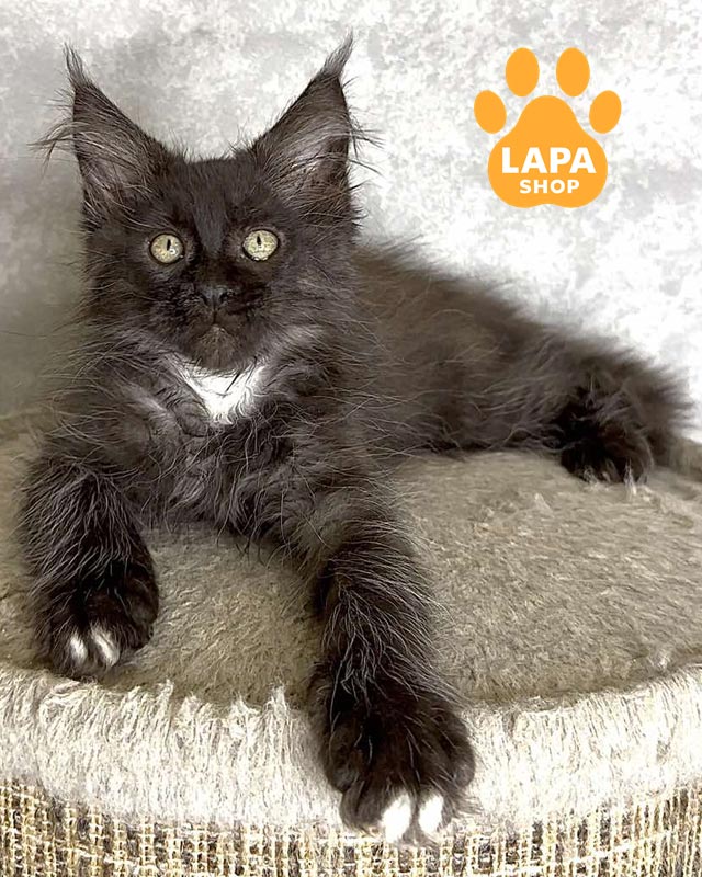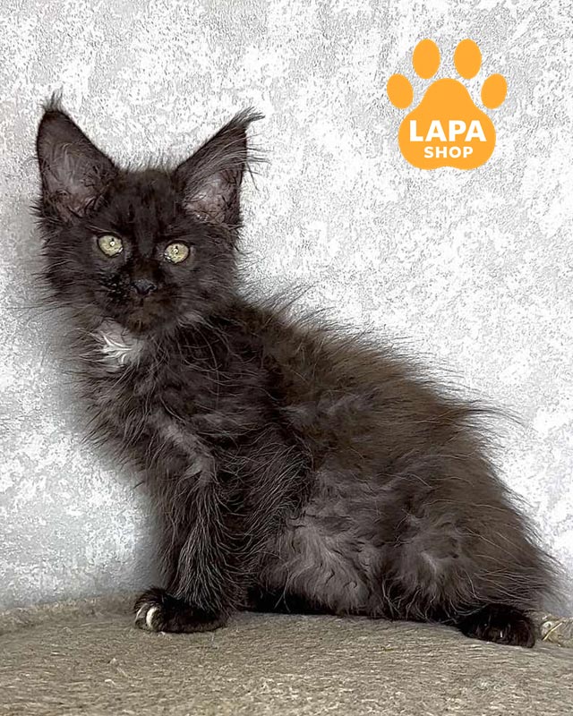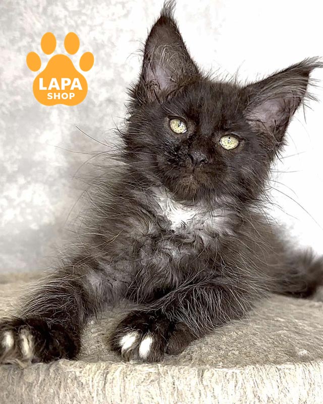 Bizon is a spectacular Maine Coon with a rich black smoky color, where every movement reveals a silver undercoat, creating the effect of a mysterious glow.