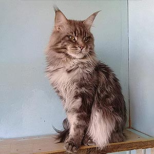 Has bought the black Maine Coon When choosing a breed, we read a lot and decided to settle on the Maine Coon. Having seen the kitten Crowley on your website, we realized at first glance that he was our boy. Kittens of this breed are active, friendly, playful, loving, with a strong psyche. They are also described as "cat-dogs", loyal, meek, with high intelligence and a tendency to learn commands. Our kitten fully meets every characteristic of the breed. He is gentle and loving, he has become a loyal companion for me, pleasantly surprising me with the speed of assimilation and learning of commands and a really strong psyche, which is very important in our time. Meek towards our other cats, he loves to wash them and does not ignore games with both other pets and people. An incredibly beautiful, gentle giant. Moderately active, moderately calm, not inclined to harm in any way. He loves to walk in the backyard, and in general it should be noted that these cats do not belong in a studio apartment or in a small house: they need space. Maine Coons are also purrs and love to talk, but it is difficult to call their meow obsessive or annoying, these sounds are not loud, but rather, soothe and evoke pleasant emotions. In conclusion, I will say that we are more than satisfied and it is really impossible to appreciate the amount of happiness and love that the Maine Coon brought to our home. There are NO downsides!