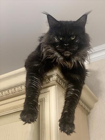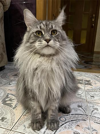 Has bought the black Maine Coon When choosing a breed, we read a lot and decided to settle on the Maine Coon. Having seen the kitten Crowley on your website, we realized at first glance that he was our boy. Kittens of this breed are active, friendly, playful, loving, with a strong psyche. They are also described as "cat-dogs", loyal, meek, with high intelligence and a tendency to learn commands. Our kitten fully meets every characteristic of the breed. He is gentle and loving, he has become a loyal companion for me, pleasantly surprising me with the speed of assimilation and learning of commands and a really strong psyche, which is very important in our time. Meek towards our other cats, he loves to wash them and does not ignore games with both other pets and people. An incredibly beautiful, gentle giant. Moderately active, moderately calm, not inclined to harm in any way. He loves to walk in the backyard, and in general it should be noted that these cats do not belong in a studio apartment or in a small house: they need space. Maine Coons are also purrs and love to talk, but it is difficult to call their meow obsessive or annoying, these sounds are not loud, but rather, soothe and evoke pleasant emotions. In conclusion, I will say that we are more than satisfied and it is really impossible to appreciate the amount of happiness and love that the Maine Coon brought to our home. There are NO downsides!