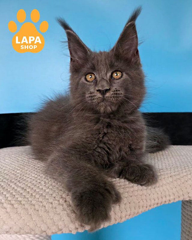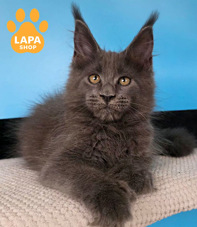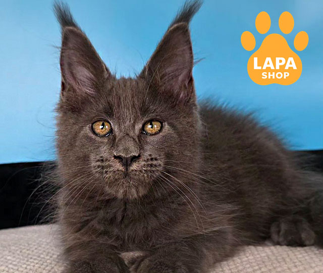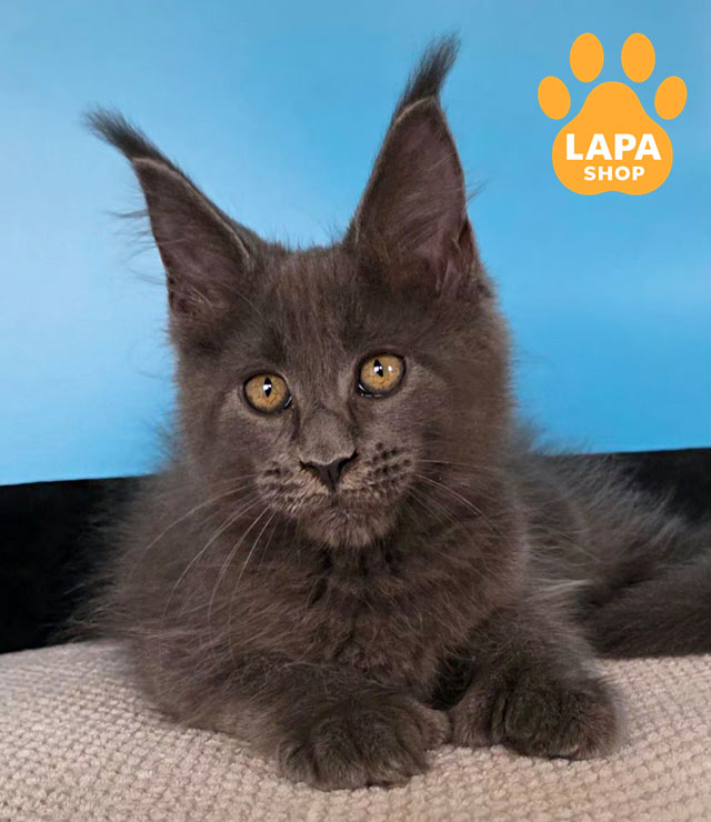 Yana is a spectacular Maine Coon cat with a blue color (a), which looks noble and very harmonious on her thick coat.