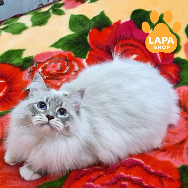 Has bought the Neva masquerade cat I looked for a Siberian kitten for a year before adopting my kitten. I had one "breeder" in the US try to scam me. Others I spoke to had long wait lists. I liked being able to see pictures and video of the kittens instead of getting on a waiting list, not knowing when I would get a kitten, etc. Ruslan was extremely helpful with the entire process of getting my kitten. He answered any questions I had and made the process really easy. He sent updated pictures of my kitten when I inquired about her. Ruslan even put me in contact with someone local that I met at the airport when I was picking up my sweet girl, which was great because I was intimidated by the idea of importing a pet to the US and finding the right place to pick her up when her flight arrived. My kitten, Ellie, is wonderful. She is playful and has a really fun personality. Everything went just as Ruslan told me it would. We will definitely use Lapa again for our next kitten. I appreciate that the breeder had her spade. She arrived in good condition. I loved the videos I received. When my vet checked her vaccinations and microchip based on her passport, everything was good. There was one vaccination that required multiple injections that she still needed one shot of. Other than that, everything was done. My vet said that she was perfectly healthy. Her breed is exactly like I expected. I had done a lot of research prior to choosing her breed. I love her funny antics. Many articles I read said that Siberians are the dogs of the cat world. She is so curious. Ellie even plays fetch with us. It is so cute and hilarious to watch her. She is very playful with us and her toys, likes to play with water, is great in the bath, doesn't mind being groomed; she has the behaviors that I expected from my research. She is absolutely beautiful.