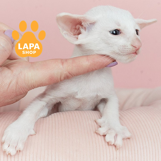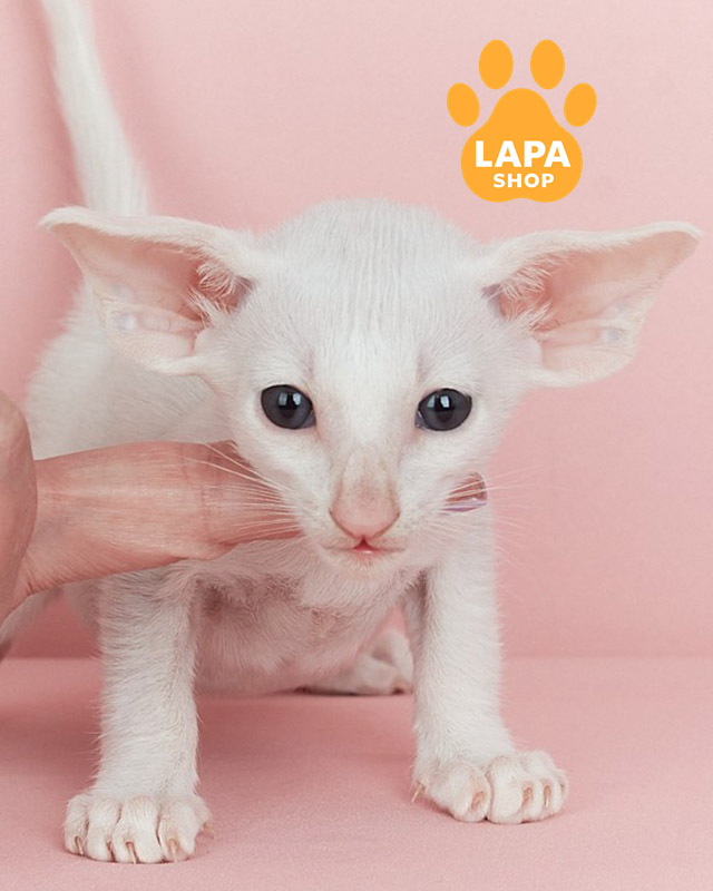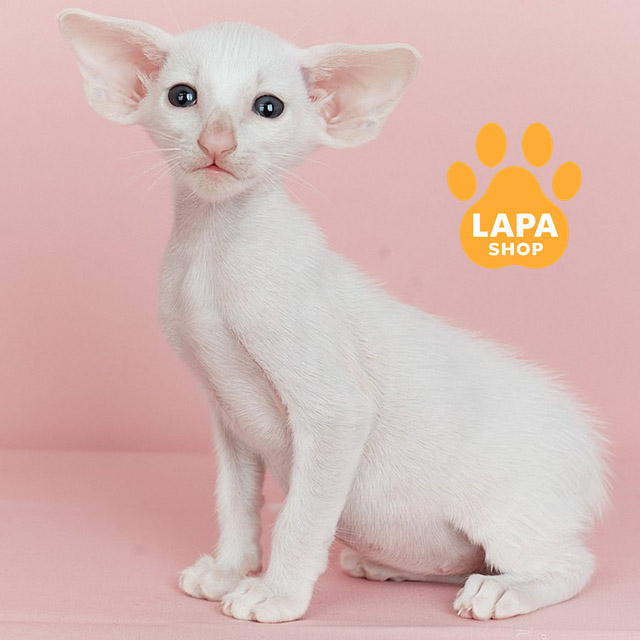 This elegant cat is an Oriental Shorthair with a pure white color (w). His elegant posture and shiny coat make him a real decoration of the home. A cat will definitely bring an atmosphere of harmony and charm to your home.