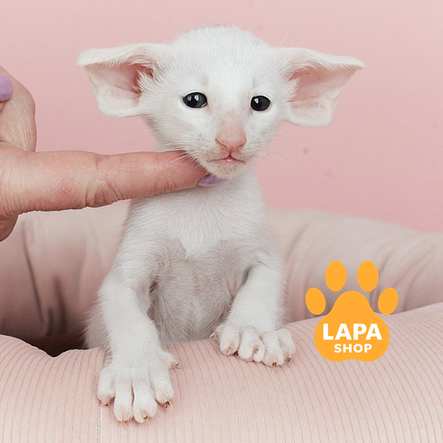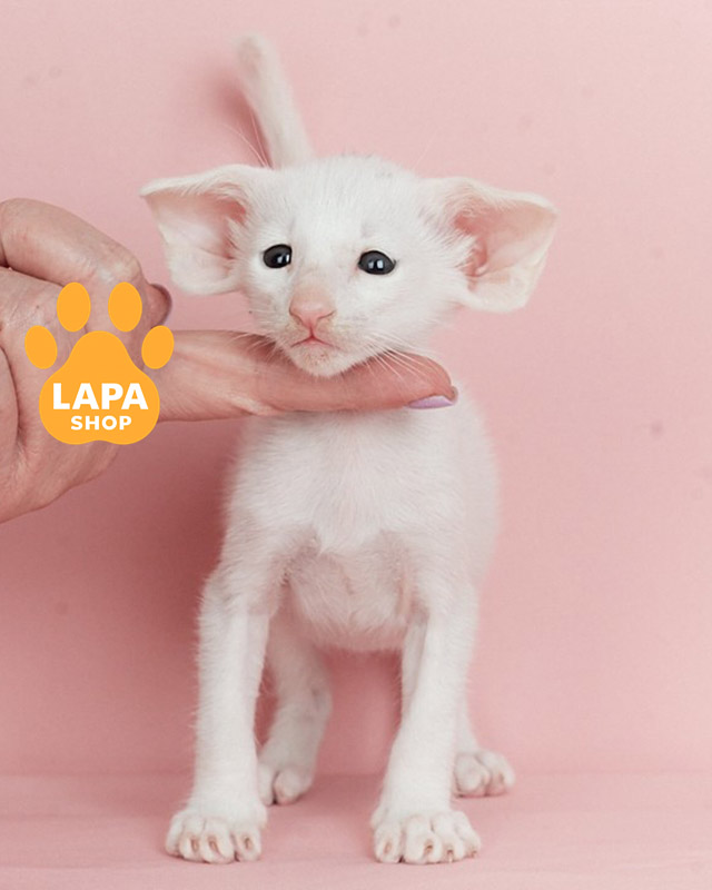 This elegant cat is an Oriental Shorthair with a pure white color (w). His elegant posture and shiny coat make him a real decoration of the home. A cat will definitely bring an atmosphere of harmony and charm to your home.