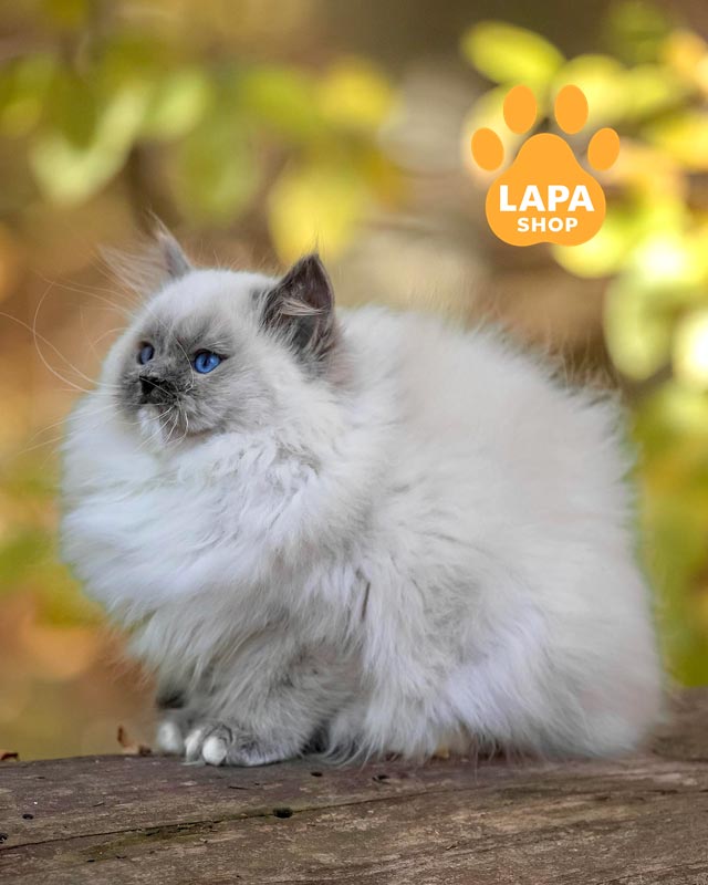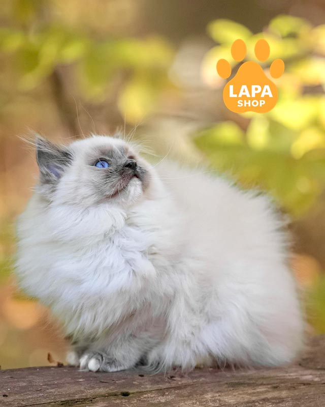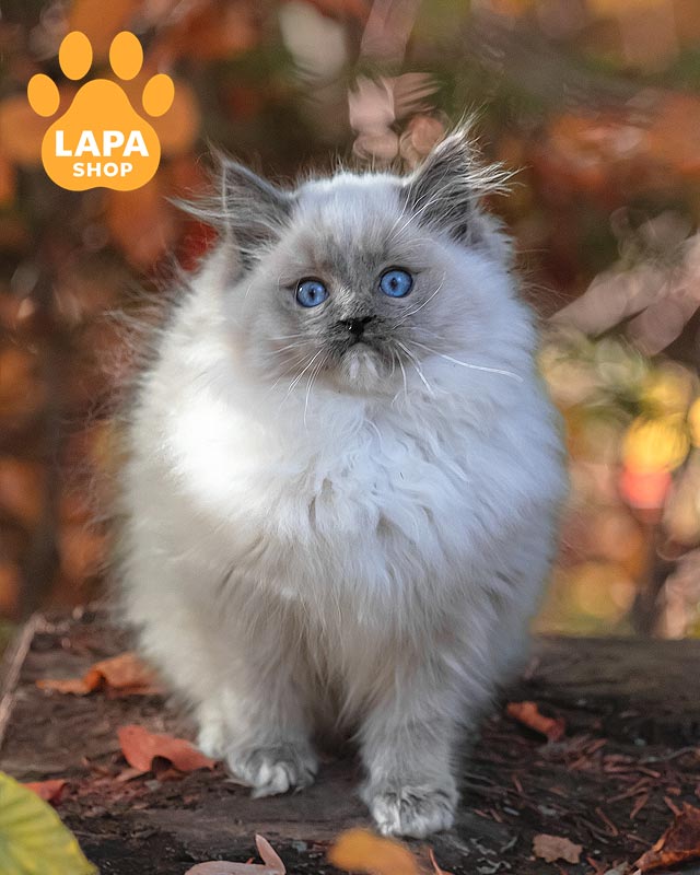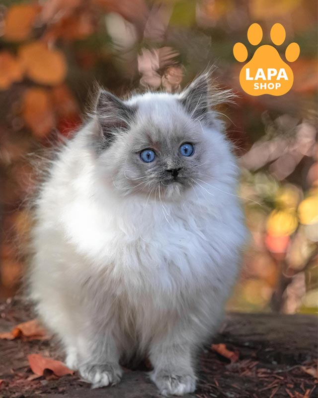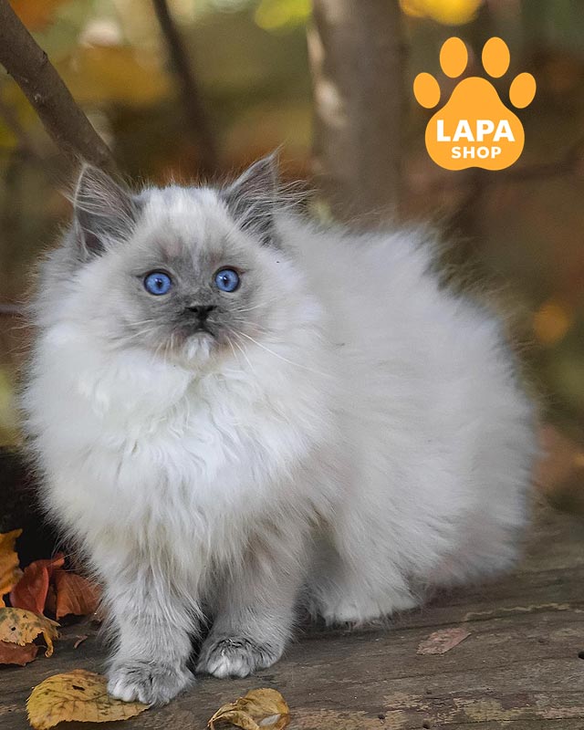 Nika is a charming Ragdoll girl with a delicate blue mitted color (a 04) and deep blue eyes that shine with affection.