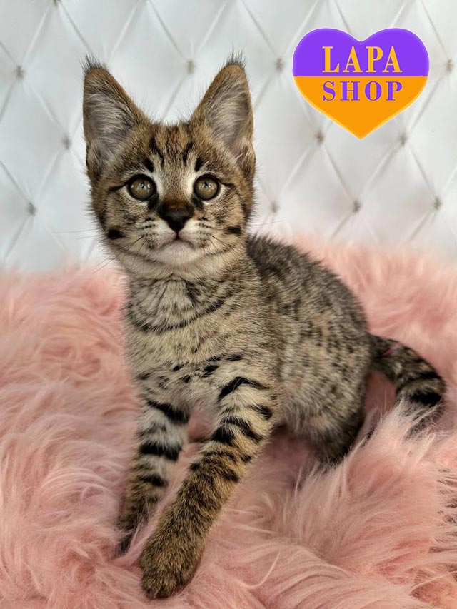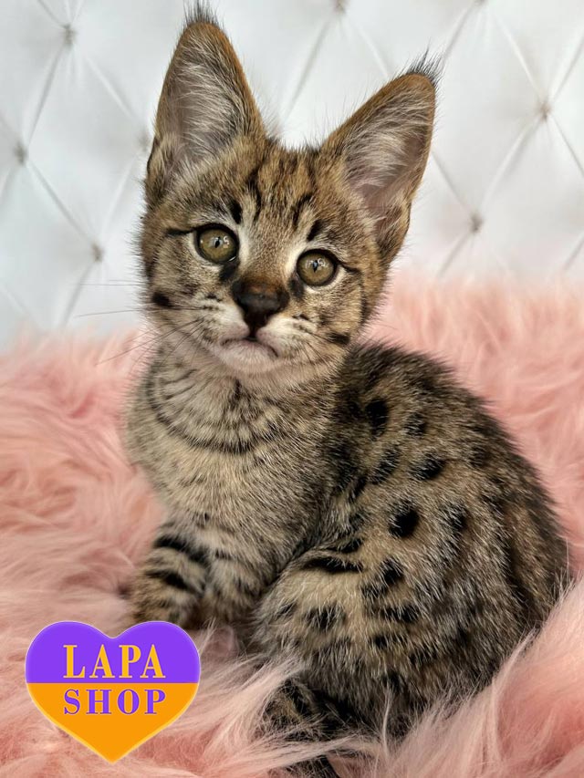 Yuki is an exceptional F1 Savannah boy, a direct descendant of a wild-colored serval. He has the intelligence, grace and strength of a true predator, combined with attachment to humans and a lively interest in the world. His long paws, large ears and penetrating gaze will not leave anyone indifferent.