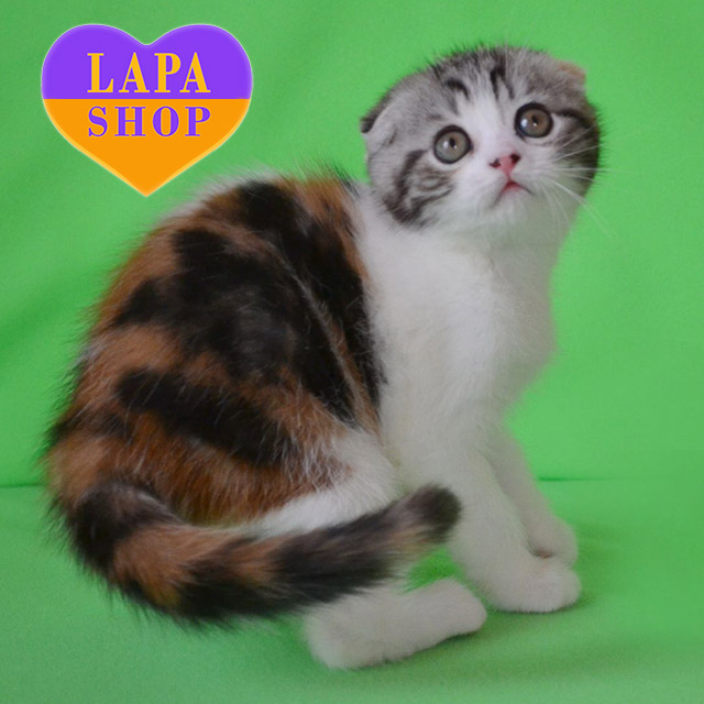 Julija is a beautiful Scottish Fold girl with an elegant tortoiseshell bicolor (f 22 03) color. Her unique appearance and breed qualities make her special.