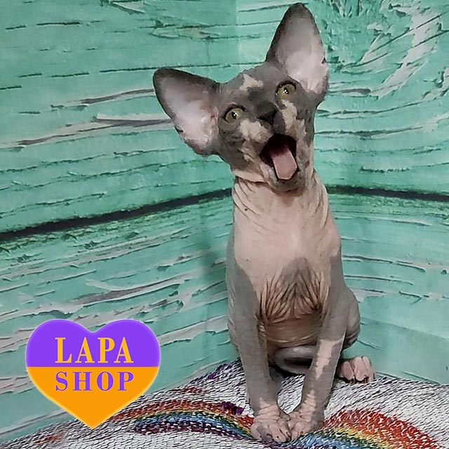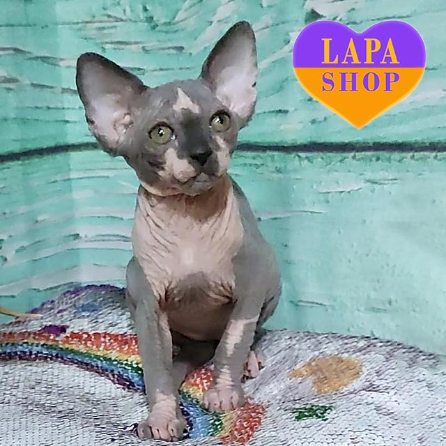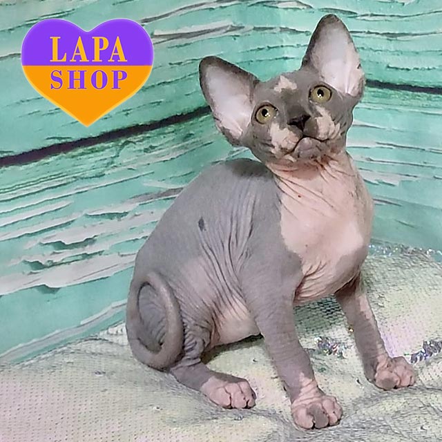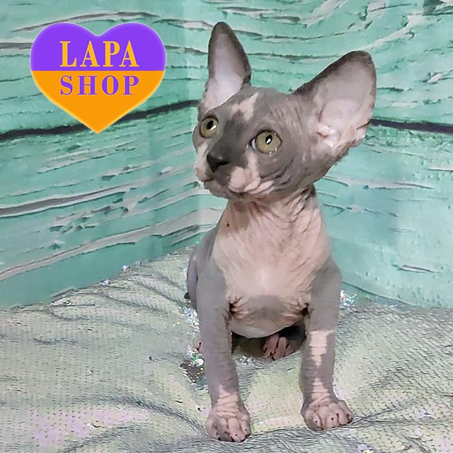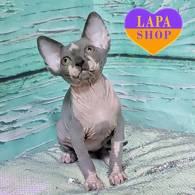 Jasper is a charming Canadian Sphynx boy with velvety blue bicolour skin.