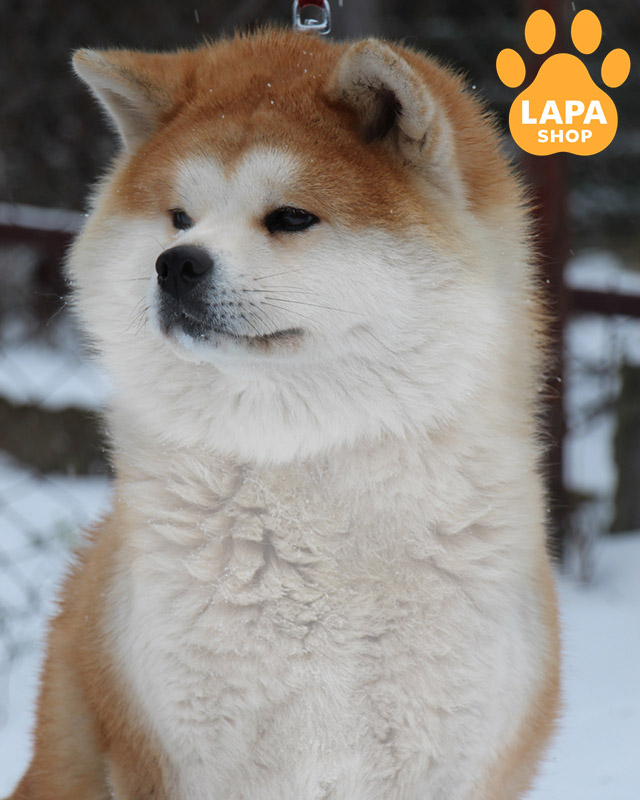 Sayane is a cute Akita Inu with an attractive red and white color. She has a compact build, a gentle and pretty face, small ears, and a short nose, which gives her a special charm. Thanks to his cheerful and playful nature, he will make a wonderful family companion. His height is 56 cm.