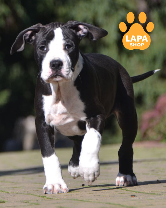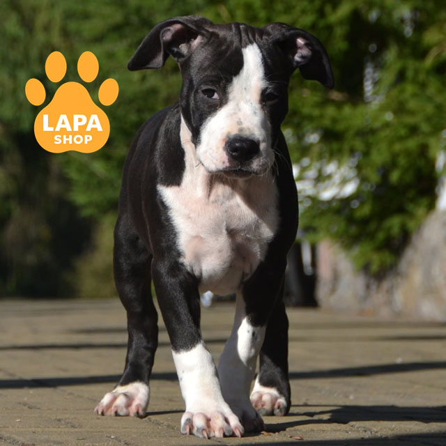 Onyx Queen is a beautiful black and white American Staffordshire Terrier. Her beautiful coloring and expressive appearance make her attractive to any family.
