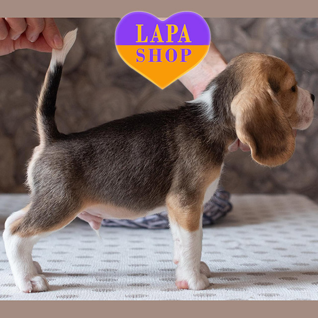 This charming boy is a beagle with a harmonious tricolor color that perfectly emphasizes his graceful appearance. His expressive eyes and graceful posture make him especially attractive. He has an elegant appearance and will fit perfectly into your family.