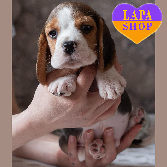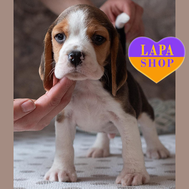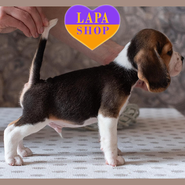 This charming boy is a beagle with a harmonious tricolor color that perfectly emphasizes his graceful appearance. His expressive eyes and graceful posture make him especially attractive. He has an elegant appearance and will fit perfectly into your family.