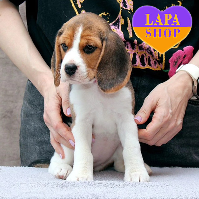 Zlata is a charming beagle girl with a classic tricolor color. Her elegant appearance and graceful features make her a true decoration of the breed.
