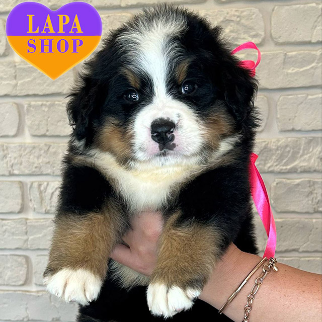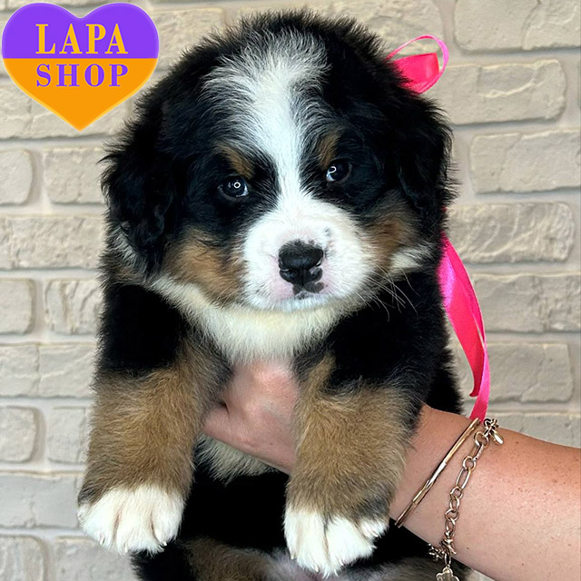 This small Bernese Mountain Dog has a bright tricolor coat and an expressive face. Extremely lively and active, she has shown an inquisitive nature from the first days. Smart and energetic, she will definitely not let you get bored – a great option for an active family.