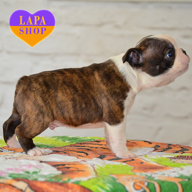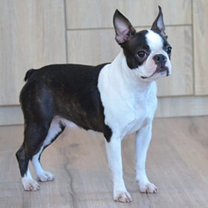 Honey is a cute Boston Terrier with a black and white brindle coloration, giving him a stylish look. His expressive face and compact build add to his special appeal. Smooth fur and a well-formed physique make this guy a great friend for your family.