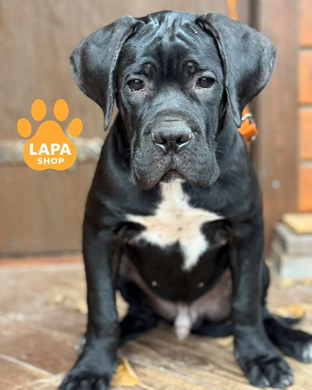 Sarmat is a striking Cane Corso boy with a deep black color. His strong physique and noble appearance emphasize the strength and beauty of this breed. An elegant black fur coat makes it even more expressive and attractive.