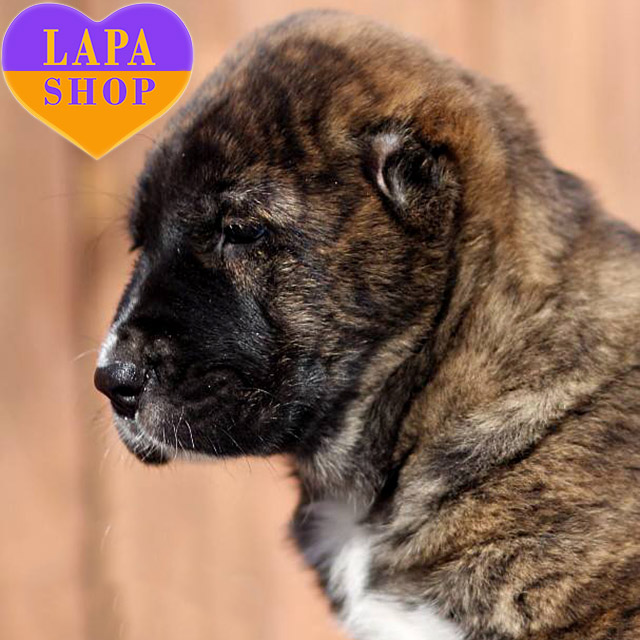 A spectacular Central Asian Shepherd girl with a luxurious brindle color and white markings. The strong physique and noble expression of the muzzle emphasize its innate strength and harmony. She will become a true gem in your home.