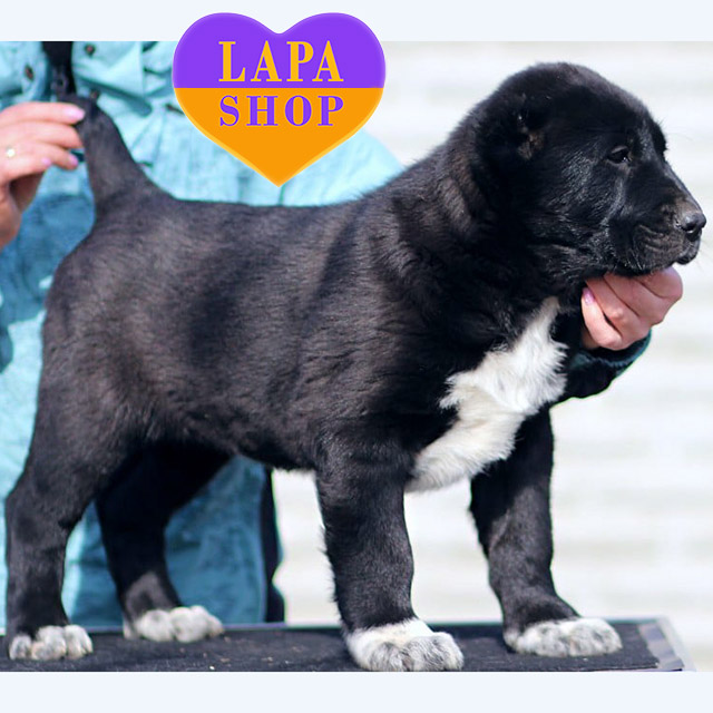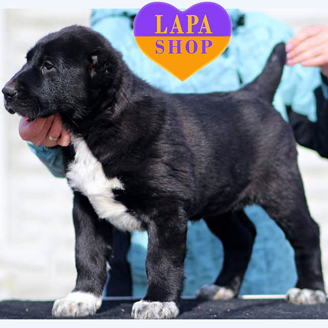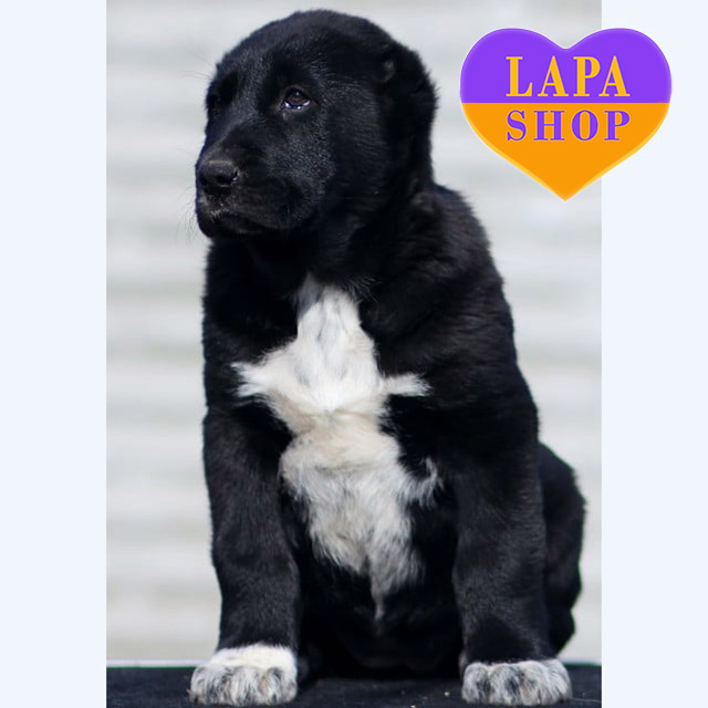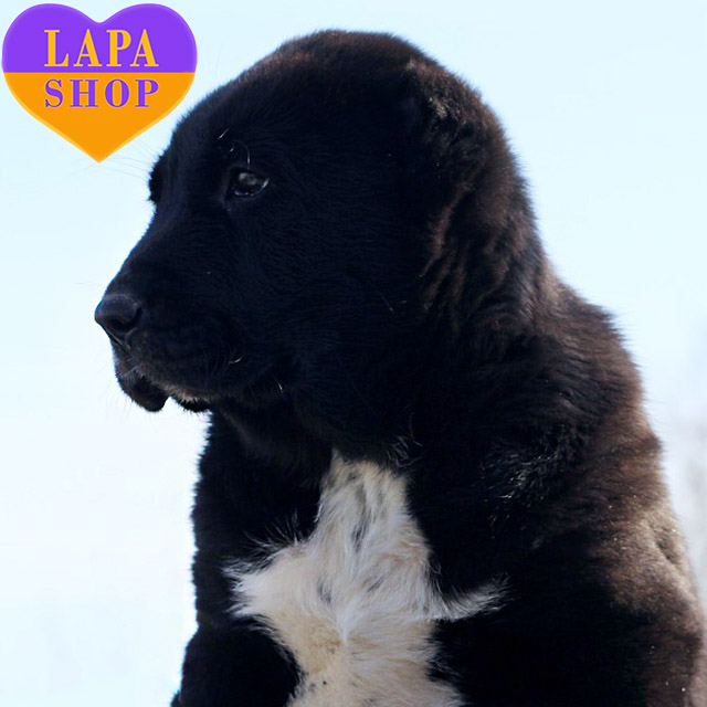 A spectacular Central Asian Shepherd girl with a luxurious black color and white markings. The strong physique and noble expression of the muzzle emphasize its innate strength and harmony. She will become a true gem in your home.