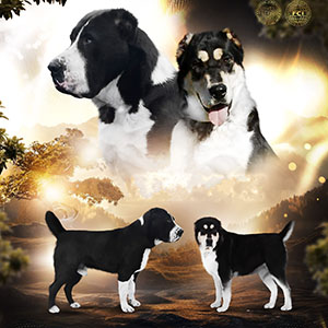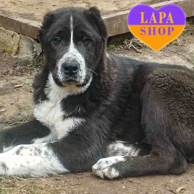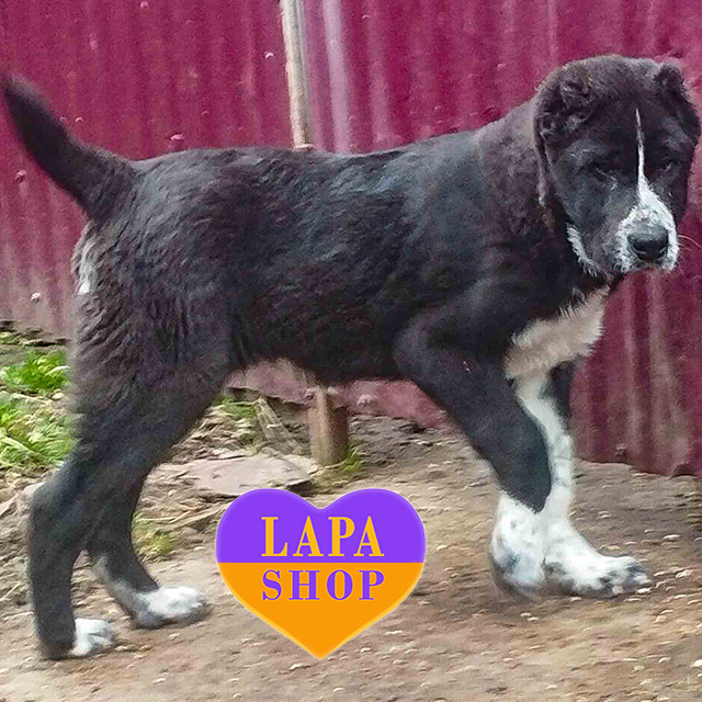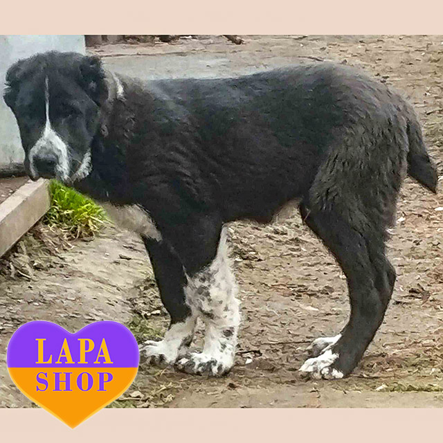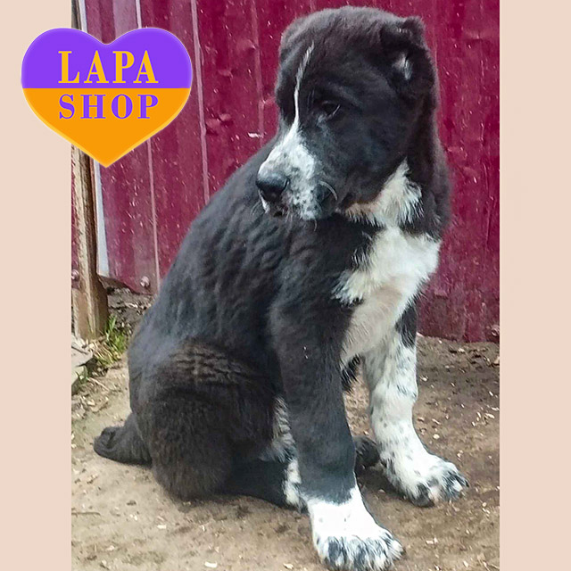 This powerful and handsome Central Asian Shepherd boy with black and white coloring looks like a real guard. His graceful appearance and strong build make him ideal for protecting your home.