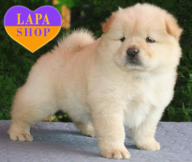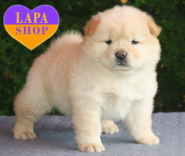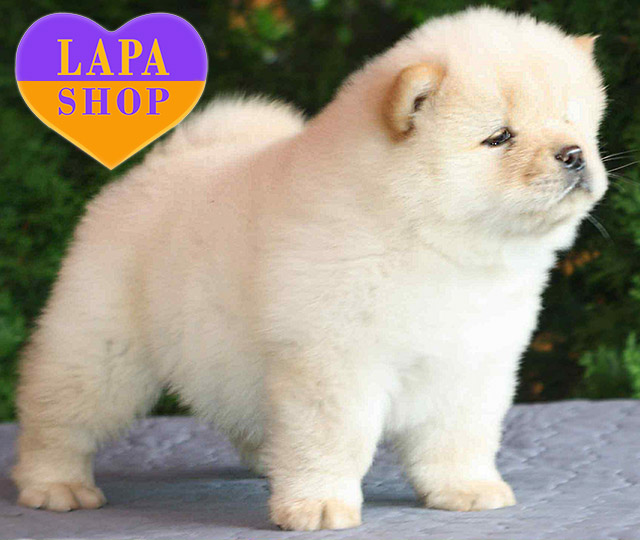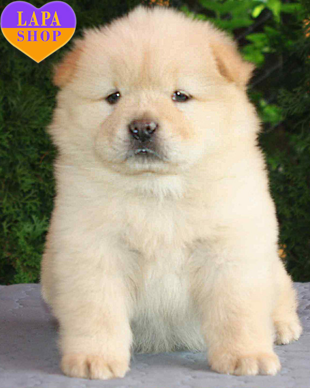 The majestic cream-colored Chow Chow boy has a thick, velvety coat and an expressive face. His appearance attracts attention, and his compact proportions make him especially attractive.