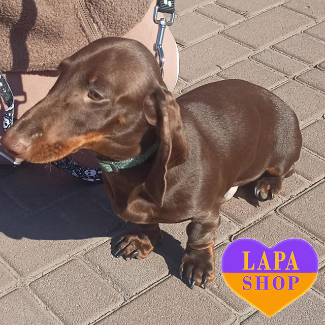 This standard dachshund boy has a rich chocolate color, which gives him a special charm. He’s compact, slender body and expressive eyes create a harmonious and elegant appearance.