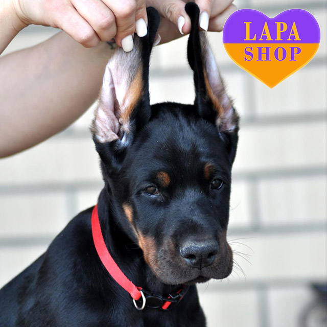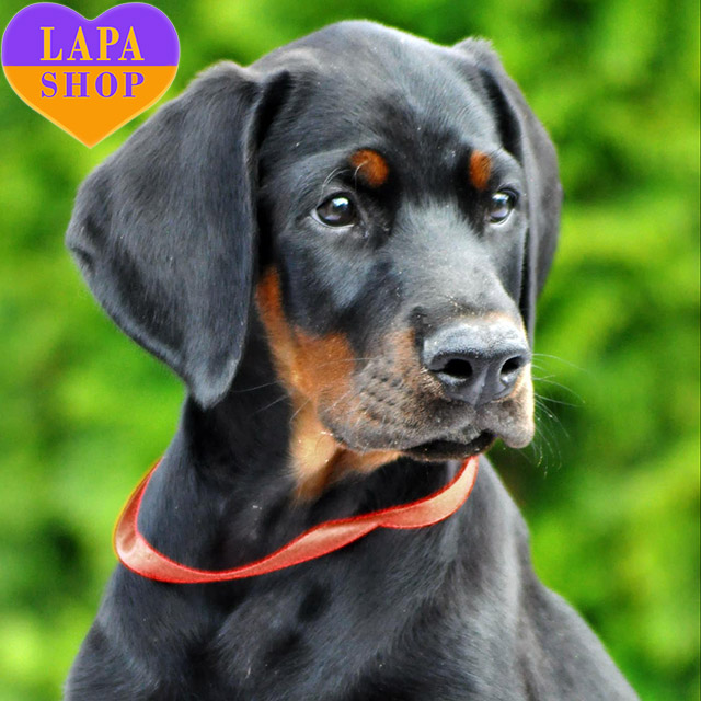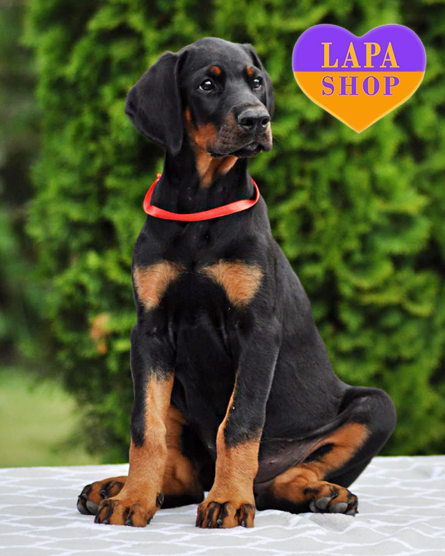 Charming Doberman girl Cosa Nostra with classic black and tan color from parents from titled lines and excellent genetic tests. Her shiny coat, correct anatomy, and noble lineage make her a wonderful representative of the breed.