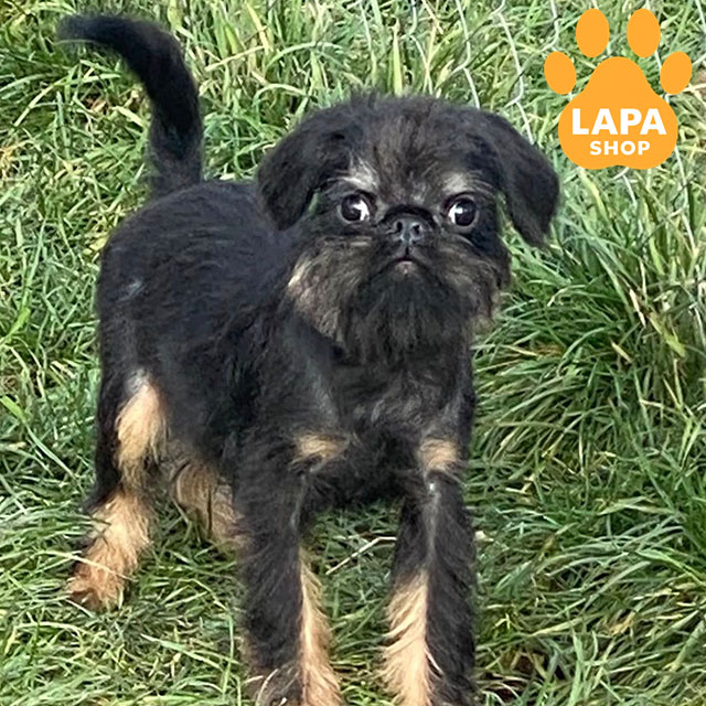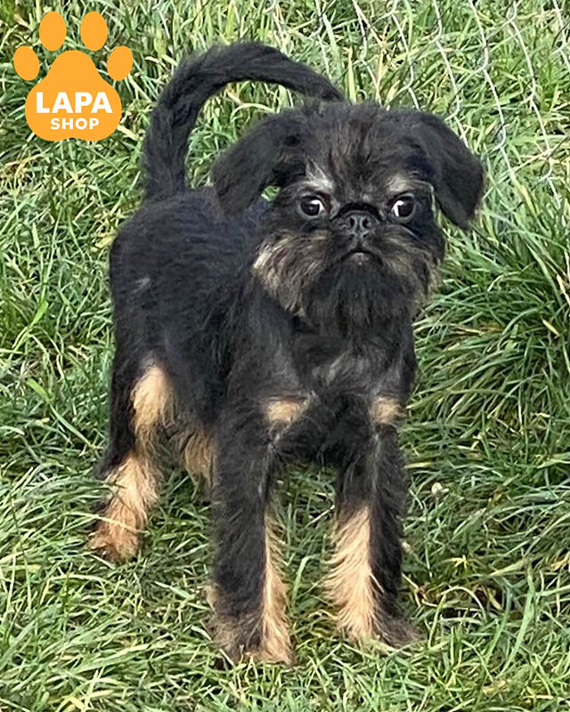 This black and red Belgian Griffon boy is distinguished by its bright color and harmonious physique. His compact and proportionate appearance emphasizes the elegance of the breed. He attracts attention with his attractive appearance and cute face.