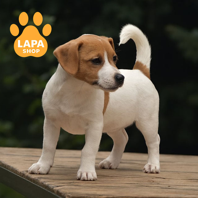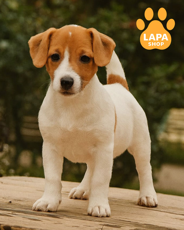 This smooth-haired girl is a Jack Russell Terrier with a white and red color. Her bright color combination and elegant posture make her extremely attractive.
