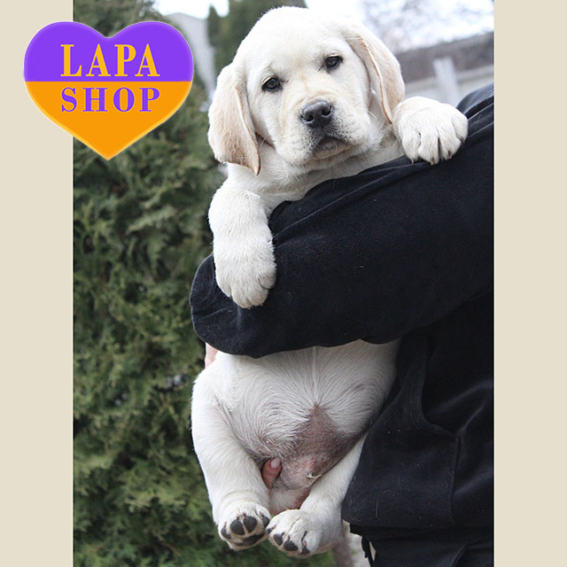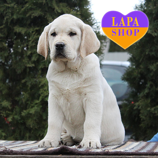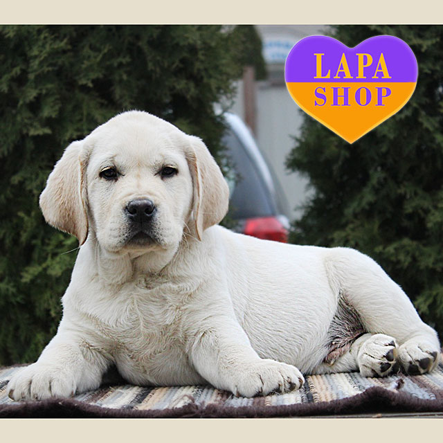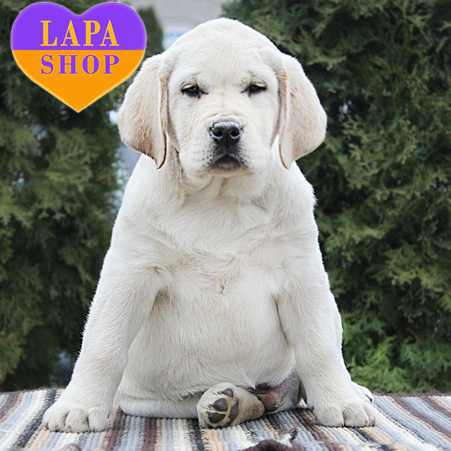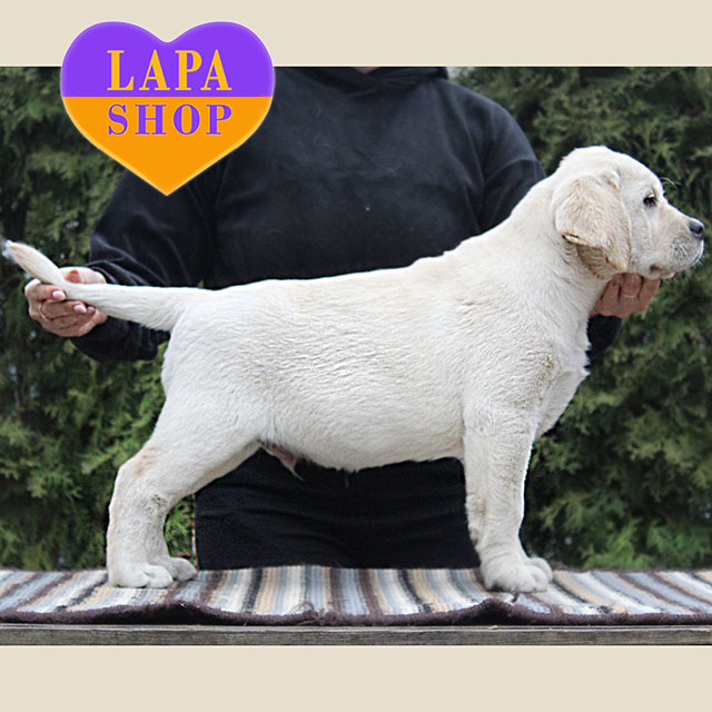 This white Labrador Retriever boy captivates with his delicate coloring and harmonious physique. He has expressive features and a strong build that emphasizes the beauty of the breed. He has an elegant appearance and his soft fur adds even more appeal.
