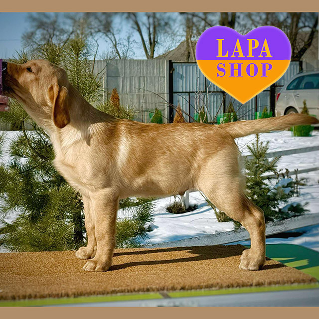 This elegant yellow Labrador looks very attractive and impresses with its beautiful physique. He has a noble appearance thanks to his magnificent coat and well-balanced build. His expressive eyes reflect calm and kindness, making him the perfect companion for the family.