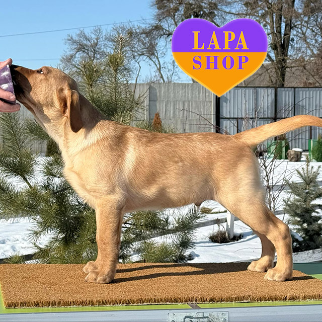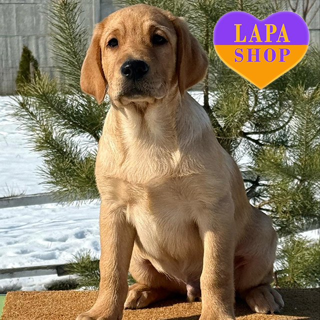 This elegant yellow Labrador looks very attractive and impresses with its beautiful physique. He has a noble appearance thanks to his magnificent coat and well-balanced build. His expressive eyes reflect calm and kindness, making him the perfect companion for the family.