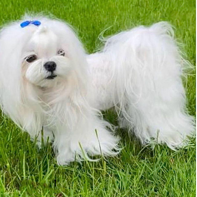 A cute girl Maltese with a cute doll face and a short nose. Asami has an adorable doll-like face, a round head, and a short, snub nose. She is very small: dad weighs 2.2 kg (brought from Italy), mom – 2.6 kg. Both parents have Korean genes.