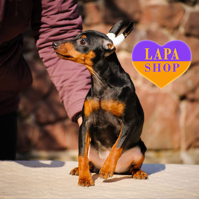 A cute black and tan miniature pinscher girl will be a bright addition to your family. She grows up in caring conditions and demonstrates good behavior and healthy development from an early age. Her descent from parents with impeccable health indicators guarantees excellent prospects.