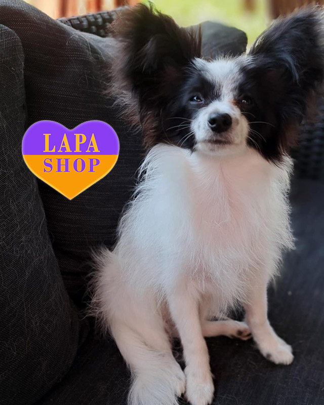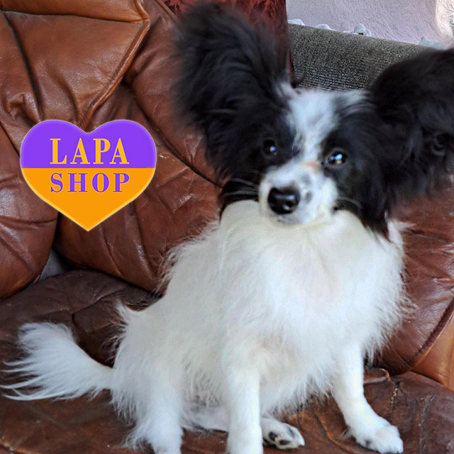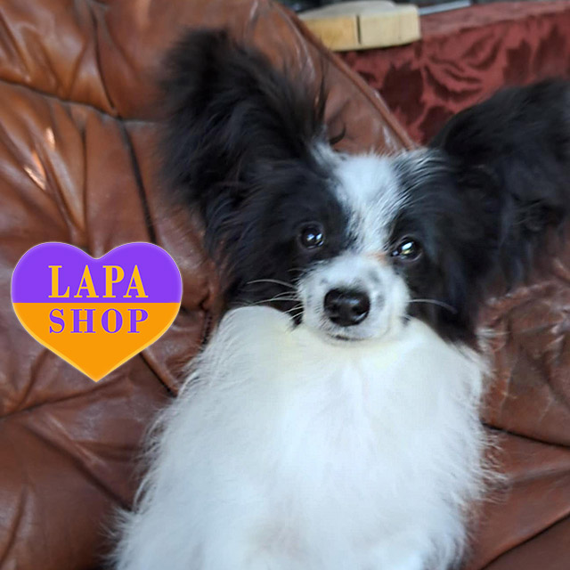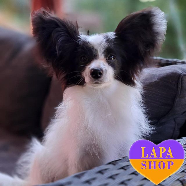A little gentleman of the Papillon breed with a spectacular black and white color. Sophisticated, with graceful butterfly ears and a light silhouette, it captivates at first sight.
