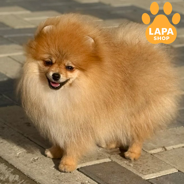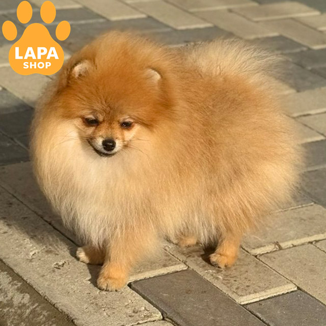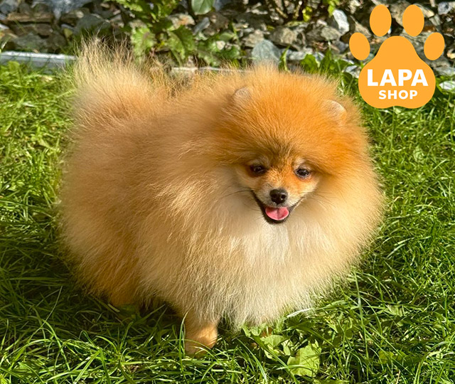 Iris is a charming Pomeranian girl. She has a bright orange color, soft fur and a very small size, which gives her a special charm.