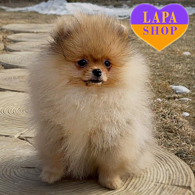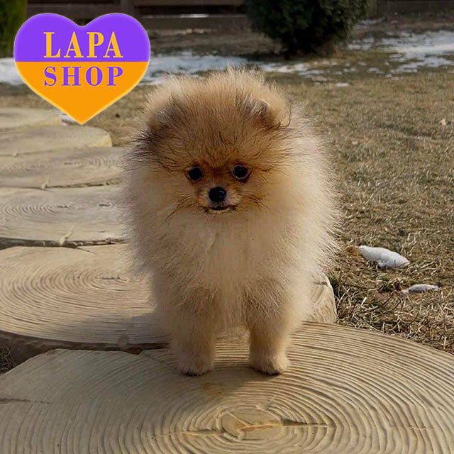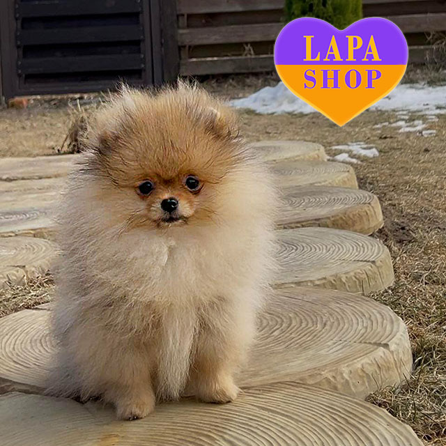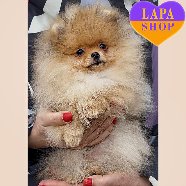 A charming Pomeranian girl with a luxurious orange-sable color. Her fluffy fur and graceful appearance make her a real little princess.