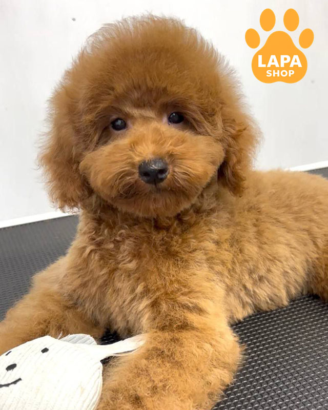 This adorable boy poodle has a rich red color that looks bright and very impressive. His neat format, graceful physique and neat appearance emphasize the elegance of the breed. The dog looks well-groomed and harmonious, making a pleasant impression at first sight.