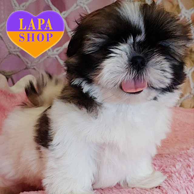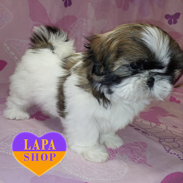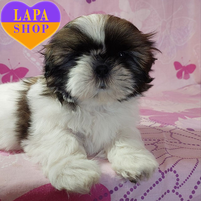 Elza is a gentle lady of the Shih Tzu breed with a red and white color that creates a warm and harmonious image. Her expressive face and silky coat give her a special charm. Despite having a hernia, she remains a charming and attractive girl.