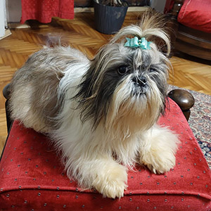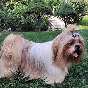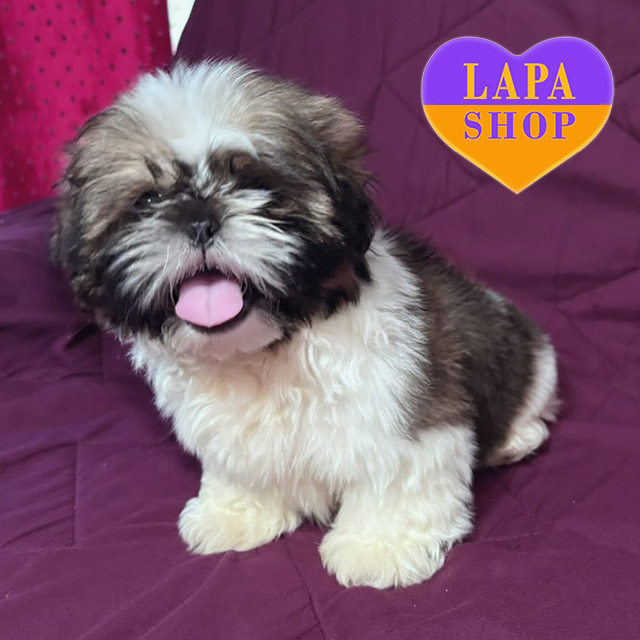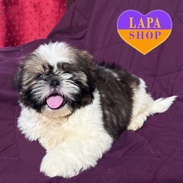 This tricolor boy Shih Tzu has a soft, silky coat with a harmonious combination of colors. His expressive eyes and neat forms make his appearance very attractive. The puppy has a harmonious physique and looks very elegant.