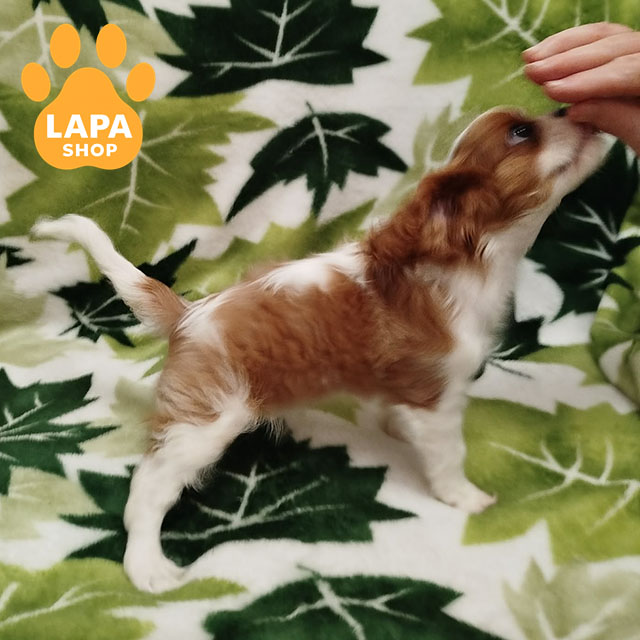 Elegant boy Cavalier King Charles Spaniel in classic Blenheim color. His harmonious appearance, expressive muzzle, and breed proportions give him a special charm.