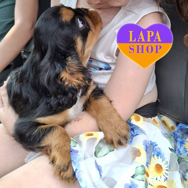 Charlene De Lavend is an elegant female King Charles Spaniel with an exquisite black and tan color. Her compact body, expressive eyes, and delicate face create a true image of a little lady. The silky coat and noble appearance will not leave indifferent fans of this rare breed.