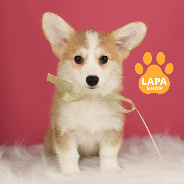 This charming Pembroke Welsh Corgi girl has a delicate red color with white markings, which gives her a special appeal. Her compact physique and sweet gaze immediately make you smile. The ponytail adds uniqueness to her look and makes it even cuter.